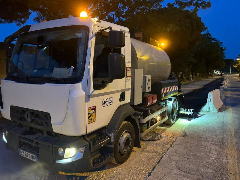 La répandeuse à émulsion de bitume avec une cuve de 4000L d’Artiloc, montée sur un porteur 10T, est idéale pour les ch...