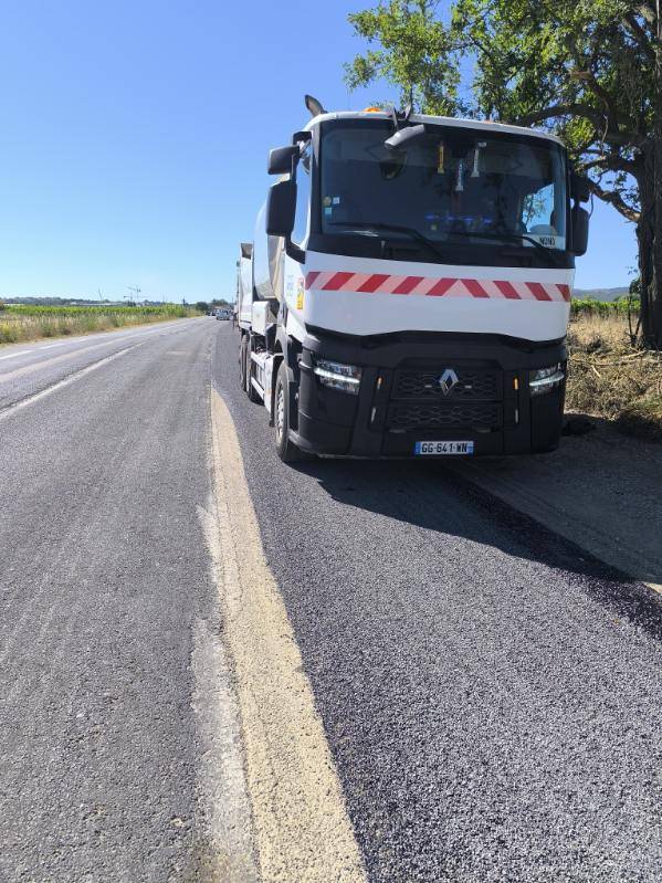 Location de bi-répandeur PATA 6x2/4 avec chauffeur pour la construction d'une route PACA / OCCITANIE