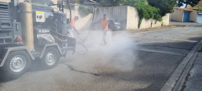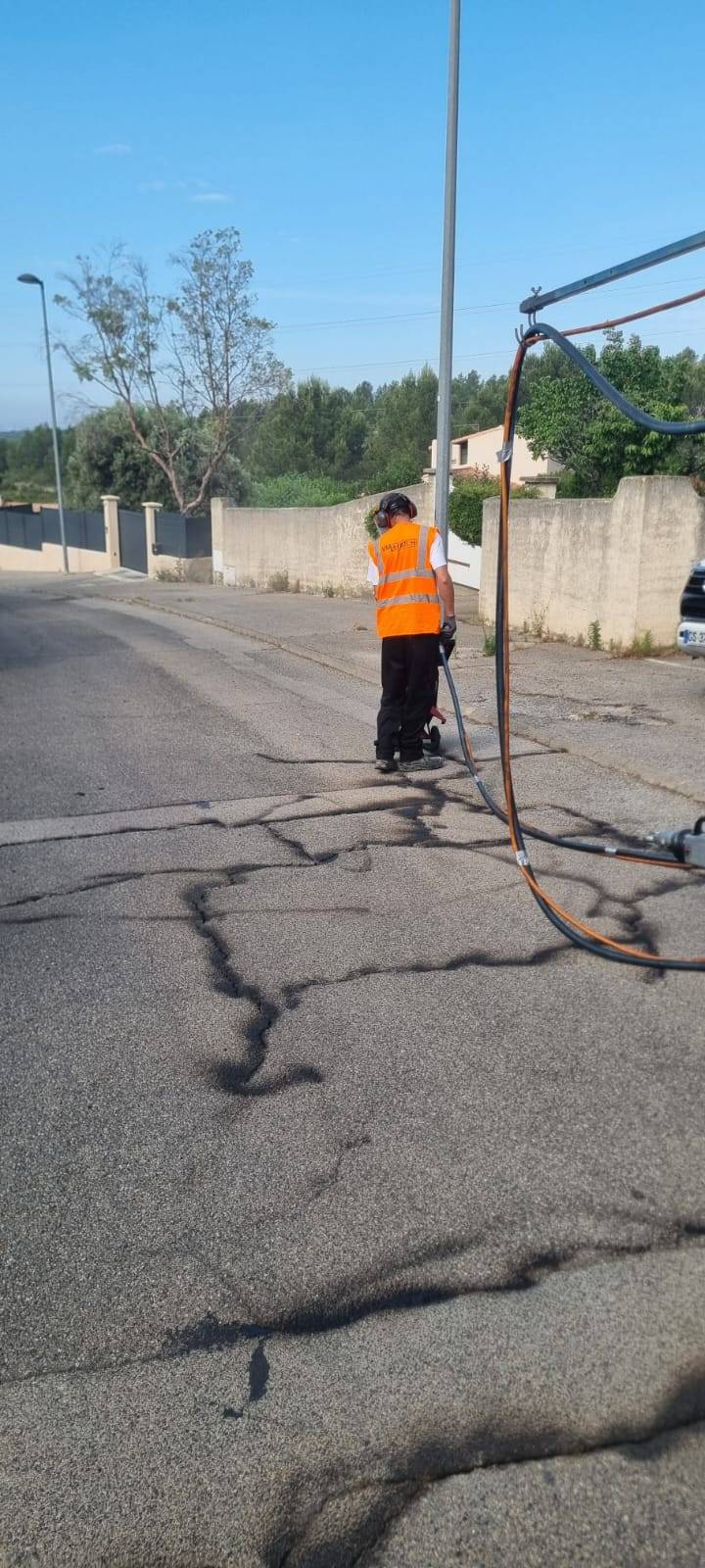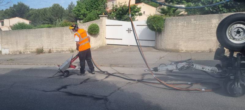 À Toulon, les fissures dans l'enrobé sont courantes en raison du trafic intense et des conditions météorologiques. Une équipe spécialisée a utilisé un fondoir pour colmater les fissures d'une route très fréquentée. Après avoir nettoyé les fissures, le bitume liquide a été appliqué, suivi de sable pour une réouverture rapide. Cette intervention a permis de prolonger la durée de vie de la route et d'éviter des réparations plus coûteuses à l'avenir.
